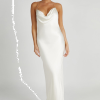 el maxine es un vestido largo ajustado y de punto transparente con escote barco alto y corte sin mangas. la espalda tiene un escote redondo bajo y la falda tiene un dobladillo limpio con una amplia abertura en la parte delantera izquierda. Confeccionado con una mezcla de tela meshki personalizada de algodón, acrílico y nailon sin forro, este vestido es lo suficientemente elástico como para ponérselo y usarlo simplemente, ¡sin necesidad de ningún tipo de cierre! completa el look con nuestras mules de ginebra con diamantes.