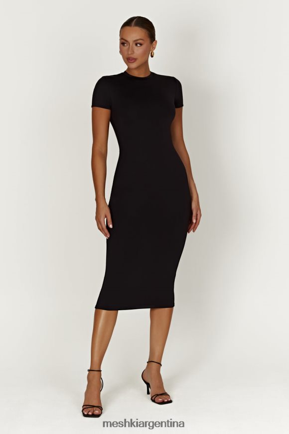 Meshki Argentina | Meshki vestido midi de manga corta de nailon reciclado penny 06482X349 negro