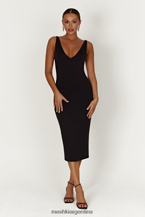 Meshki Argentina | Meshki vestido midi Gretel de nailon reciclado con cuello en V 06482X310 negro