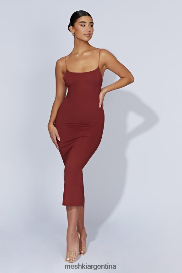 Meshki Argentina | Meshki vestido midi lexia con cuello redondo y escote pronunciado 06482X551 chocolate con cerezas